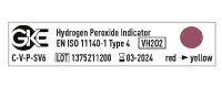 The indicators are available on card with 16 self-adhesive indicators with different specifications, dose = 2.3 mg/l H2O2 , 50 °C, alternative: 2 min, 4 min, or 6 min. The indicator can also be used for longer sterilization times, higher temperatures and concentrations.