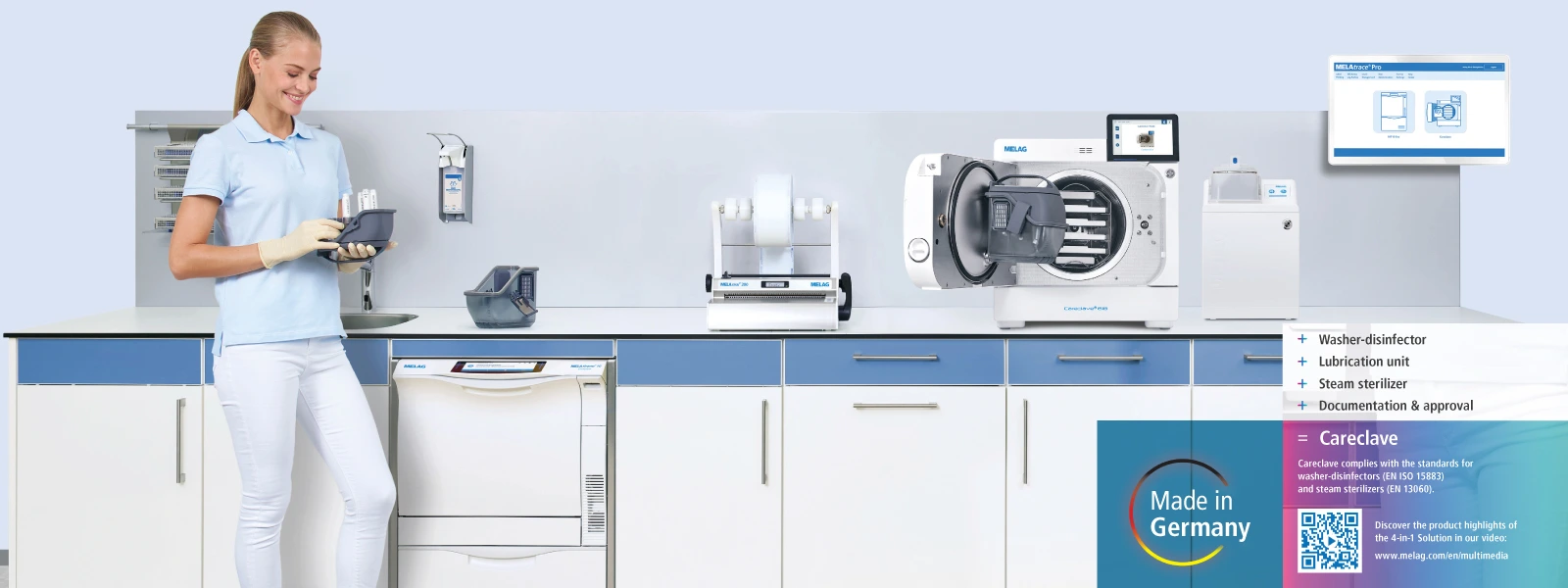 Rethink everything you know about instrument reprocessing: Careclave revolutionises the workflow in dental practices and clinics. Discover the advantages of our worldwide unique 4-in-1 Solution:
